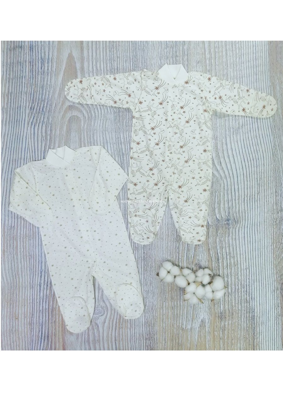 Комбинезон выполнен из 100% хлопка (кулирка), с закрытыми ножками, спереди на кнопочках и между ножек.