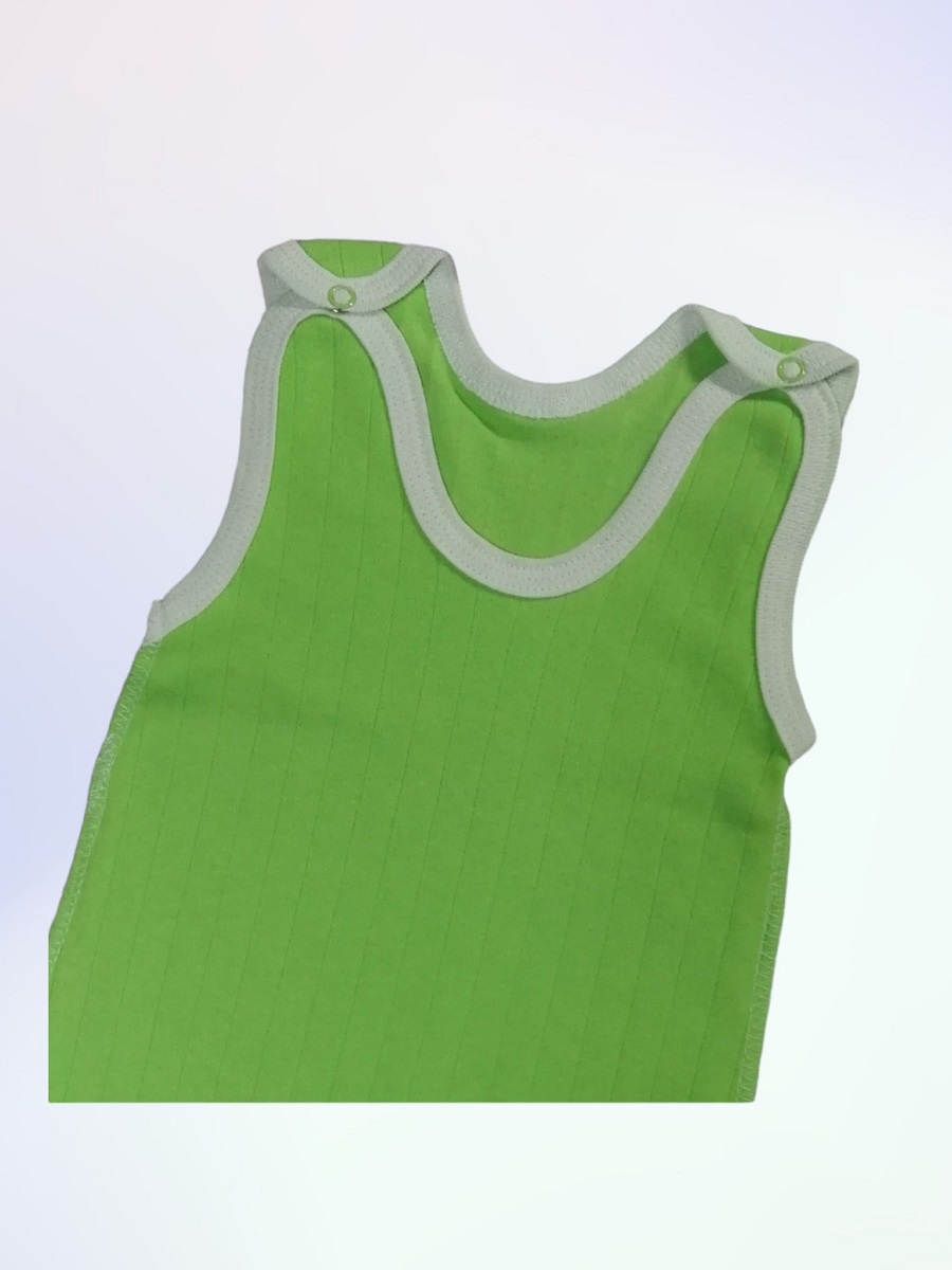 Ползунки высокие, однотонные, на плечиках застёжка на кнопочках.